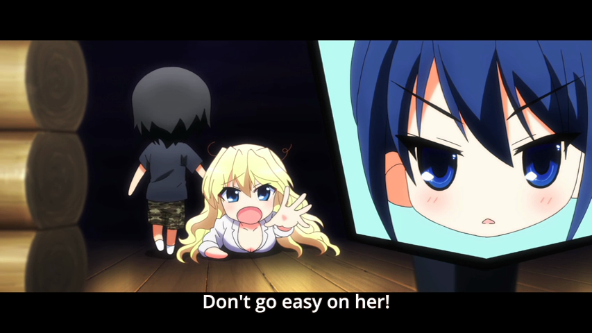 Now, I understand that the world of Grisaia is not realistic in the slightest. I suspect that the appeal of the story is in its very lack of realism. That doesn’t stop me from thinking that it has a lame sense of humour. Honestly, the VN is probably worse, because the “witty banter” of the Grisaia no Kajitsu VN mostly revolved around the MC making bigoted observations about women. HAR HAR very funny.